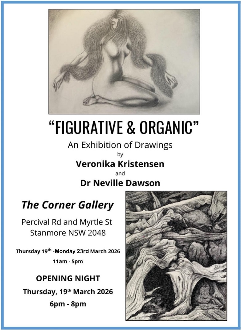 An exhibition of drawing by Sydney based artist, Veronika Kristensen and Dr Neville Dawson held at the Corner Gallery from 19th to 23rd March. Veronika Kristensen was born in...