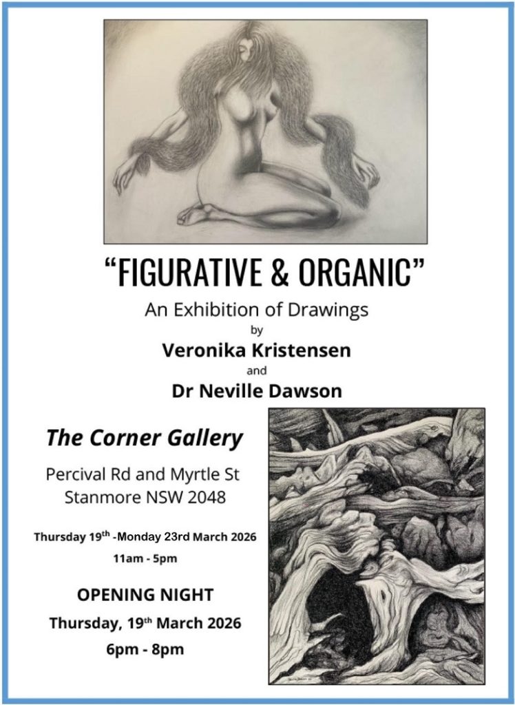 An exhibition of drawing by Sydney based artist, Veronika Kristensen and Dr Neville Dawson held at the Corner Gallery from 19th to 23rd March.