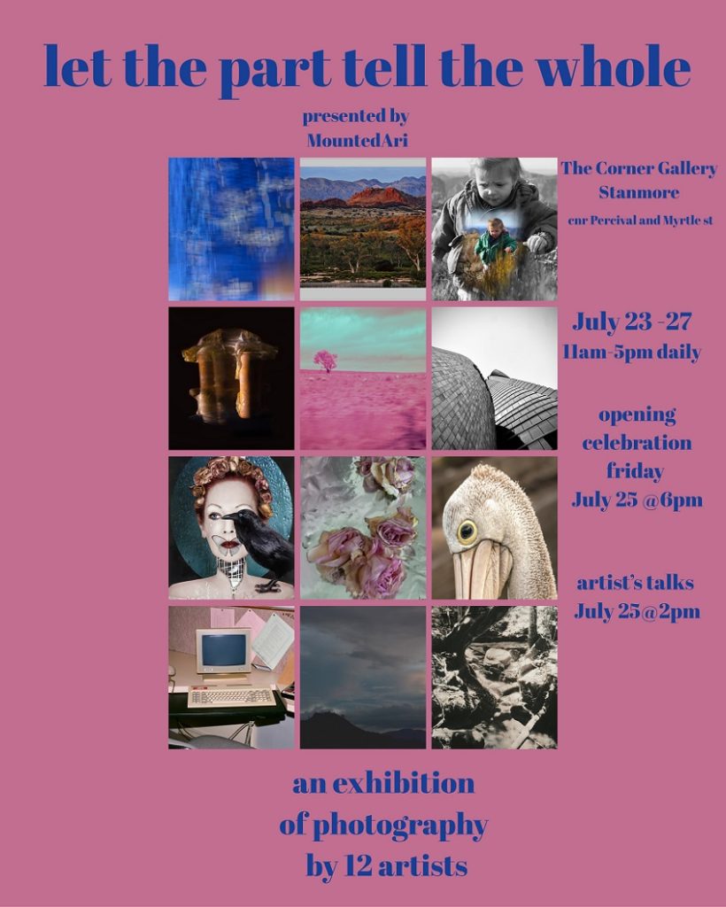 A Photography Exhibition titled ‘Let the Part tell the Whole’ commences at the Gallery on the 23rd July. An innovative collection of art photography at its very best, skilfully created by 12 artists.